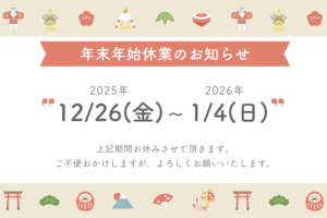 2025年 年末年始休業のお知らせ