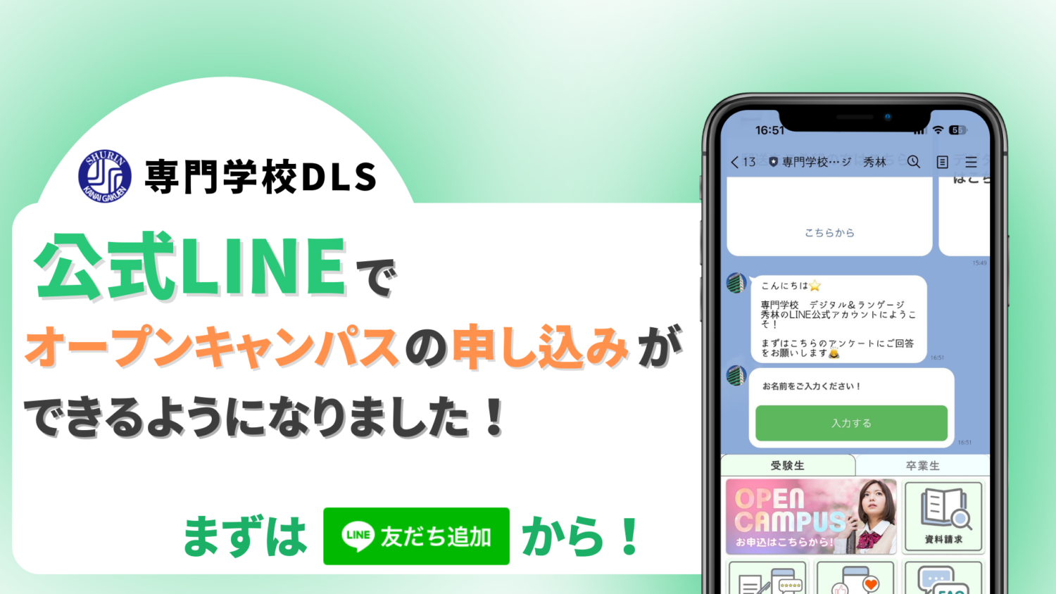 公式LINE オープンキャンパス 申し込み